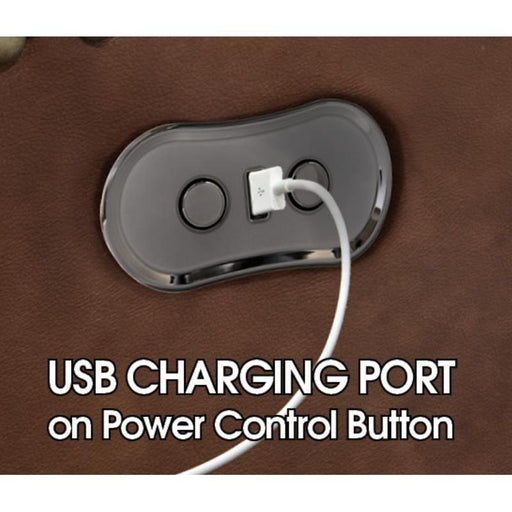 Ceretti Collection by Catnapper Furniture Brown finish Individual hand-driven brass nails Padded footrest USB charging port Scooped pad-over-chai...