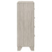 This four-drawer chest offers a stylish combination of rustic charm and modern design, making it a perfect storage solution for contemporary bedrooms. Finished in a rustic cream with rough-sawn, white-washed engineered paper veneer, it has a warm, textured appeal that’s both inviting and chic. The extra-wide polished nickel handles add a sleek, modern touch, creating a subtle contrast. Built with engineered wood, the chest features English dovetail joinery and Center metal glides for durability and smooth functionality, ensuring it meets both aesthetic and practical needs. Key Features: • Rustic cream finish with rough-sawn, white-washed engineered paper veneer • Four spacious drawers with durable English dovetail joinery • Extra-wide polished nickel handles for a sleek, contemporary look • Smooth Center metal drawer glides for easy access • Crafted from engineered wood for stability and style • Ideal for adding storage and style to modern bedrooms
