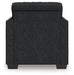 This stunning chair leaves a lasting impression. Its cozy cushions, chic coal-colored upholstery and striking nailhead trim are a perfect blend of comfort and contemporary design. And here's the showstopper‚ ambient red, white and blue LED lighting along the chair's base. The look is simply wow.