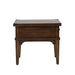 Liberty Aspen Skies End Table in Russet Brown 316-OT1020. Traditional table with a young attitude. Features rustic features of corner metal accents and metal strapping.