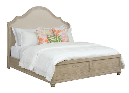 Vista Collection by American Drew Furniture White Oak finish Curved headboard Upholstered headboard This bed requires a boxspring Also available i...