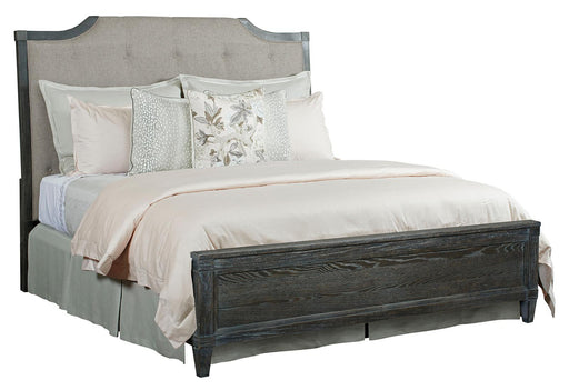 American Drew Ardennes King Lorraine Upholstered Panel Bed in Black Forest and Brindle