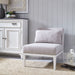 Liberty Furniture Allyson Park Upholstered Accent Chair in White 417-ACH15. Allyson Park accent chair features white wire brushed tapered legs, solid wood base frame and is upholstered in 100% polyester a grey linen for years of durability. Kidney pillow included for extra comfort. This slipper chair with its armless design makes it an ease to fit in small spaces for additional seating.